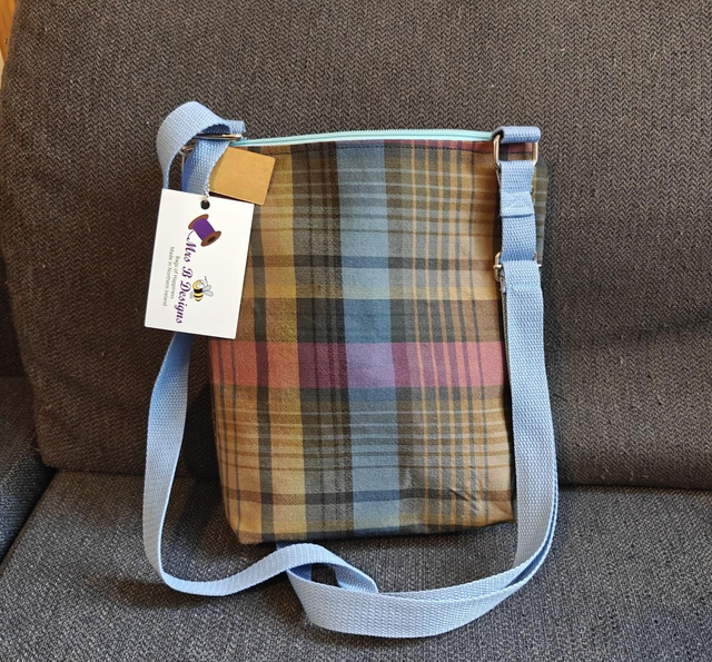 Lightweight cross body bag. Perfect for walking. Made from Lochcarron tartan with a cotton lining. Adjustable cotton webbing strap. Top zip fastening.